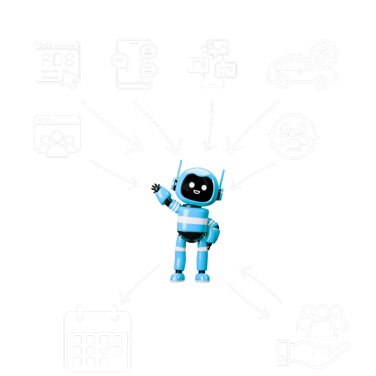 For example. Organic content driving traffic to lead capture pages, paid ads, service lane automation, orphan list automation, long term nurture and direct sms mass response. Doing all these with just a few clicks each day and automating them allows Ai and automation to work hundreds of leads everyday keeping your calendar full.
